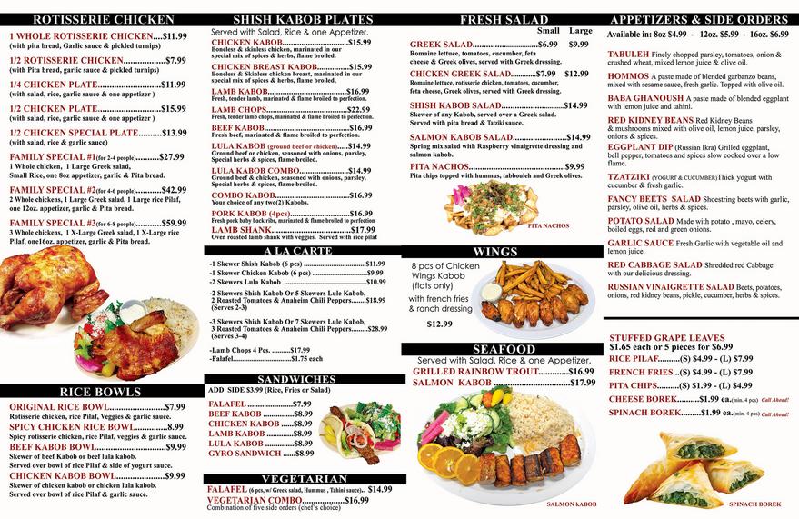 Please call for our daily specials or check out our regular menu items below.
